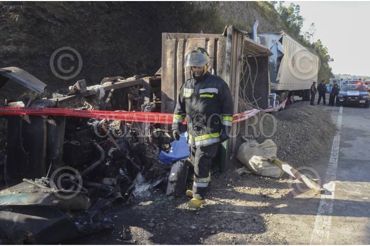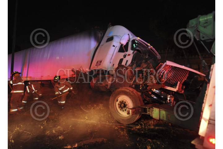 ATIZAPÁN DE ZARAGOZA, EDOMEX, 11AGOSTO2015.- Un tráiler impactó un camión dejando como saldo un chofer muerto. El conductor del tráiler se dio a la fuga, el accidente sucedió en la autopista Chamapa-Lechería en el kilómetro 14-500. FOTO: ARMANDO MONROY /CUARTOSCURO.COM