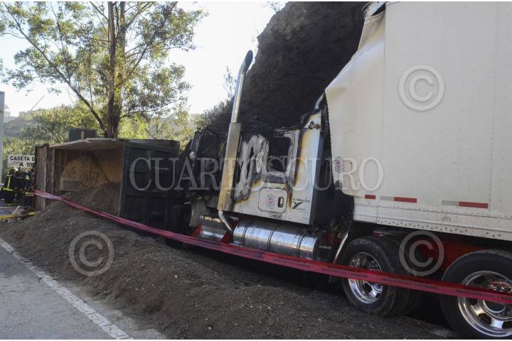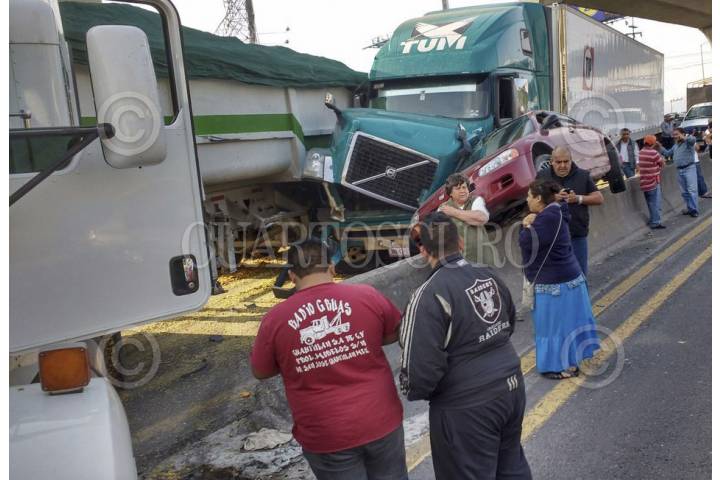 CUAUTITLÁN IZCALLI, ESTADO DE MÉXICO, 18JUNIO2016.- El choque de dos trailers y un automóvil particular provocó severo caos vial sobre la carretera México- Querétaro. El saldo es de 3 lesionados a la altura de Perinorte. FOTO: ARMANDO MONROY /CUARTOSCURO.COM