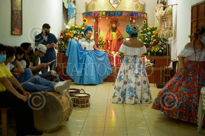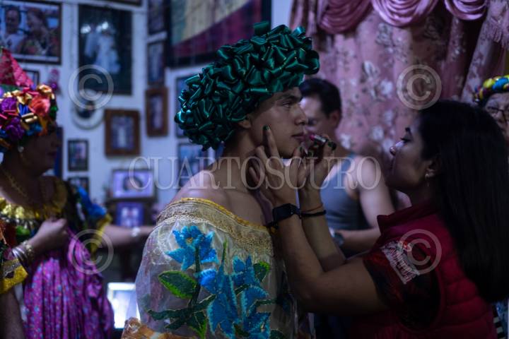 Las Chuntas, que son hombres vestidos de mujer, realizaron su tradicional recorrido en la Fiesta Grande de Chiapa de Corzo.
