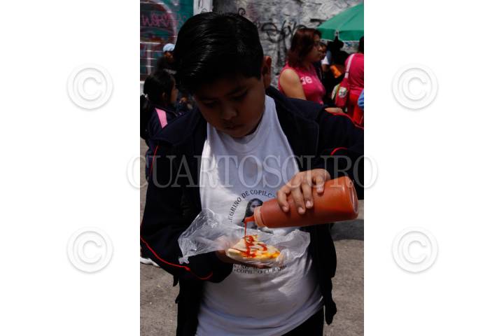 MÉXICO, D.F., 24FEBRERO2010.- Niños compran comida chatarra, la cual es alta en carbohidratos, grasas y azúcares a las salidas de las escuelas. Expertos señalan a este régimen alimenticio como uno de los principales factores en la obesidad infantil. FOTO: IVÁN STEPHENS/CUARTOSCURO.COM