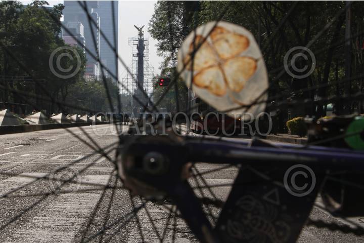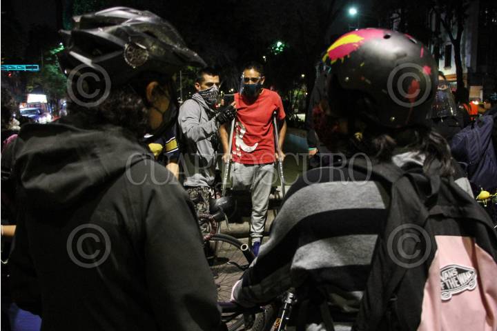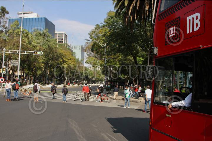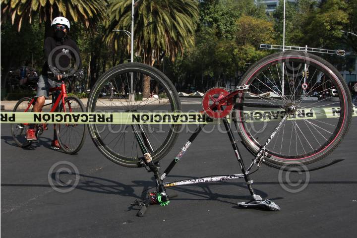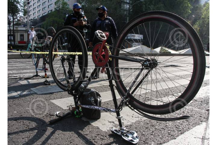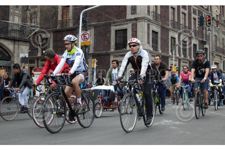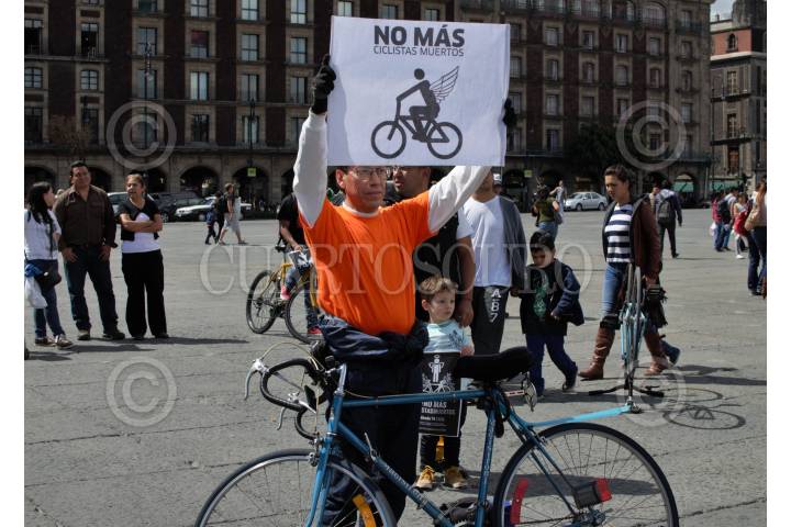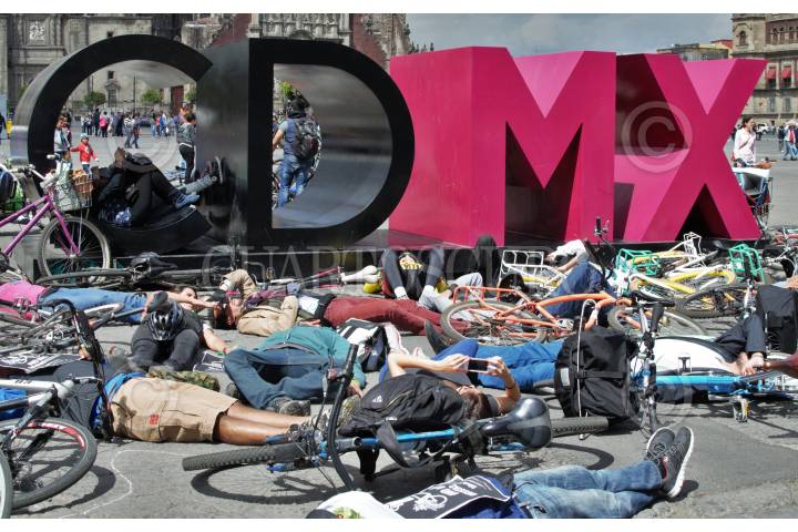 MÉXICO, D.F., 14MARZO2015.- Ciclistas capitalinos y vecinos de la colonia Polanco realizaron una rodada para exigir a las autoridades las medidas necesarias para impedir que existan más muertes de ciclistas, además solicitaron al jefe de gobierno capitalino que el reglamento de tránsito en donde se le da preferencia a los peatones y ciclistas, se respete. Según cifras del INEGI, de 159 colisiones entre automovilistas y ciclistas, 156 fueron ocasionadas por los automovilistas. El 10 de marzo pasado, un joven perdió la vida al ser arrollado por un camión de la ruta 2 sobre Mariano Escobedo, en donde hoy realizaron una pinta como señal de prioridad a los ciclistas. La rodada concluyó en el Zócalo. FOTO: MARÍA JOSÉ MARTÍNEZ HERRERA /CUARTOSCURO.COM