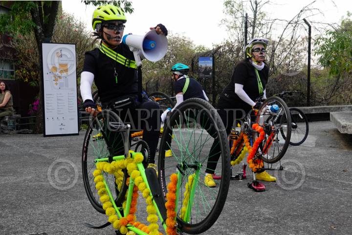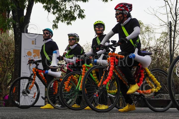 CIUDAD DE MÉXICO, 06ABRIL2024.- Escuadrón de ciclistas “muertos” realizaron una rodada escénica en Ciudad Universitaria, culminando en el Museo Universitario Arte Contemporáneo del MUAC. FOTOS: ROGELIO MORALES /CUARTOSCURO.COM
