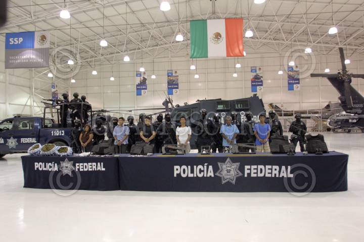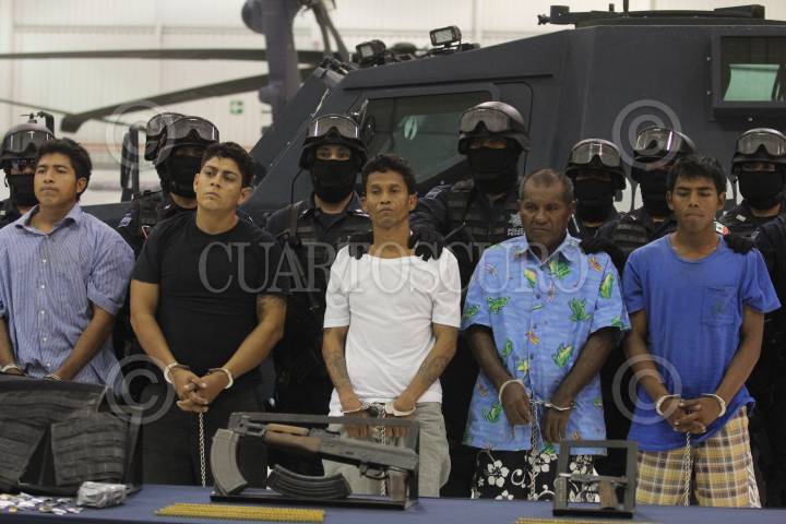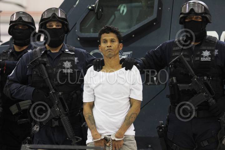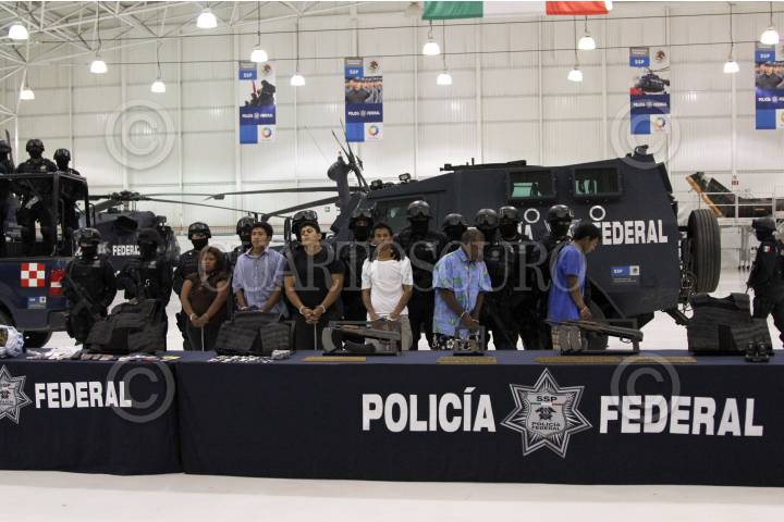 MÉXICO, D.F., 05DICIEMBRE2011.- Personal de la Policía Federal presentaron ante los medios de comunicación a seis presuntos miembros de la organización delictiva Cártel Independiente de Acapulco (Cida), entre los detenidos se encuentra Gilberto Castrejón Morales, El Comandante Gil, líder de esa célula delictiva. FOTO: SAÚL LÓPEZ/CUARTOSCURO.COM