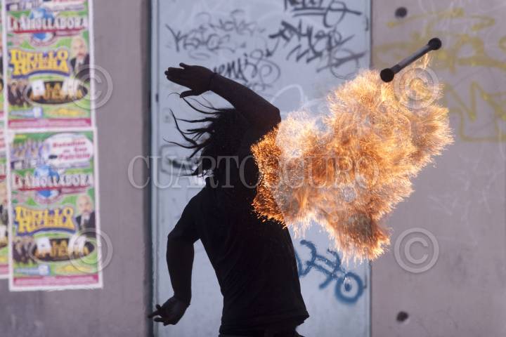 MÉXICO, D.F., 15DICIEMBRE2011.- Un malabarista juega con fuego en un crucero de la ciudad de México para ganarse algunas monedas. FOTO: ISAAC ESQUIVEL/CUARTOSCURO.COM