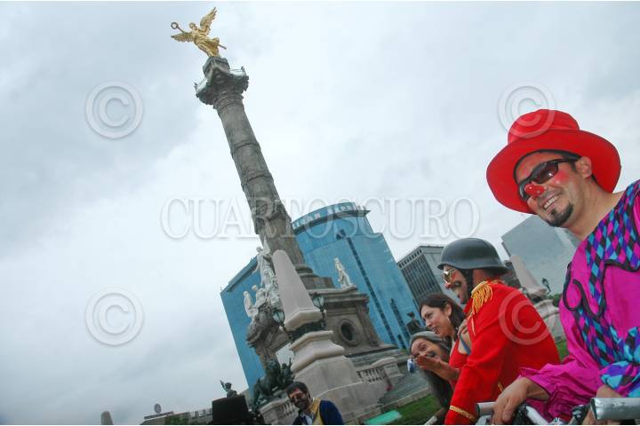 MÉXICO D.F., 07SEPTIEMBRE2008.- Un grupo de payasos circularon con sus bicicletas durante el ciclotón que se realizo en el circuito de Paseo de la Reforma. FOTO: RODOLFO ANGULO/CUARTOSCURO.COM