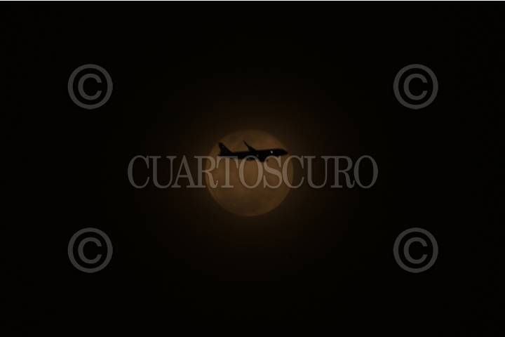NAUCALPAN DE JUÁREZ, ESTADO DE MÉXICO, 31ENERO2018.- Vista de la luna durante el anochecer de este miércoles. En la imagen la silueta de un avión comercial pasa sobre el horizonte de la luna. FOTO: MARIO JASSO /CUARTOSCURO.COM