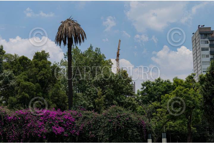 CIUDAD DE MÉXICO, 16JULIO2024.- Se puede observar una palmera muerta desde el Parque México de la colonia Condesa. FOTO: ALICE MORITZ/CUARTOSCURO.COM
