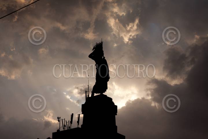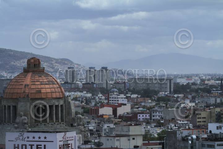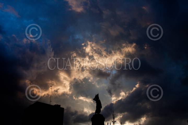 MÉXICO, D.F., 22JUNIO2011.- En los últimos días los capitalinos han gozado de cielos nublados que mitigaron la ola de calor que se vivía en la capital. La imagen corresponde al Monumento a Cuauhtemoc momentos antes de caer la tarde, que se ubica en Reforma y Cuauhtemoc. FOTO: MOISÉS PABLO/CUARTOSCURO.COM