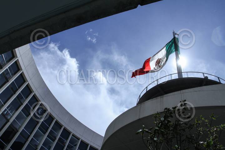 CIUDAD DE MÉXICO, 10MARZO2016.- Cielos despejados en algunas zonas de la ciudad por los fuertes vientos aunque con un clima variante, que va del sol a la lluvia, todo esto debido a la entrada del frente frío no. 44. En la imagen, la bandera en el asta del Senado de la República. FOTO: ADOLFO VLADIMIR /CUARTOSCURO.COM
