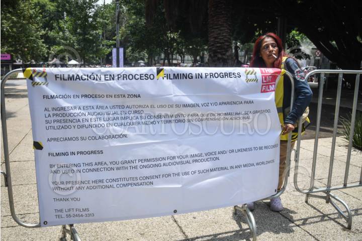 CIUDAD DE MÉXICO, 23AGOSTO2025.- Rodaje por parte de la empresa The Lift Films que mantiene cerrada avenida paseo de la Reforma del Ángel de la Independencia a la glorieta de la Diana Cazadora. El gobierno capitalino informó que será a las 15:30 horas cuando la circulación será abierta. FOTO: MARIO JASSO/CUARTOSCURO.COM