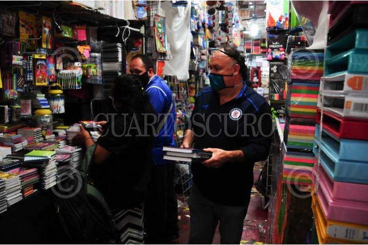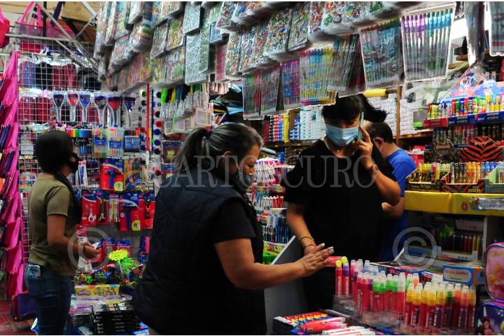 Familias pasan por los pasillos de la Plaza Mesones para comprar útiles escolares.