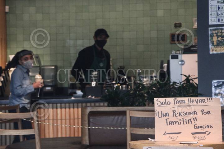 Con carteles improvisados, personal de cafetería continúa laborando.
