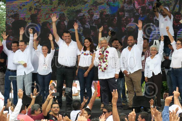 CANCÚN, QUINTANA ROO, 26JUNIO2018.- Andrés Manuel López Obrador, candidato a la presidencia de la República por la coalición "Juntos haremos historia", encabezó su cierre regional de campaña ante cientos de personas. En donde reiteró lo que dijo su coordinadora de campaña Yeidckol Polevnski que de haber fraude se les va aparecer el diablo, ya que esto lo dice la gente y no él. FOTO: CUARTOSCURO.COM