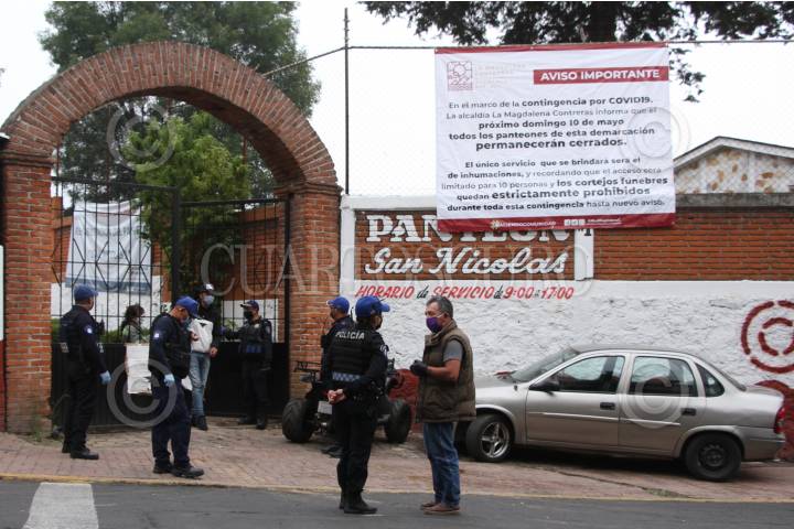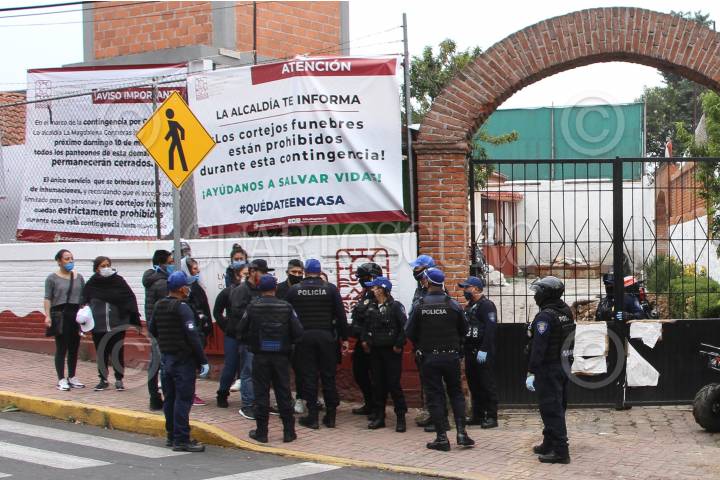 Con conatos de pelea entre policías y civiles, sin respetar la sana distancia, es cómo comienza el cierre parcial de panteones para evitar la aglomeración de visitantes por el Día de las Madres en la alcaldía Magdalena Contreras.