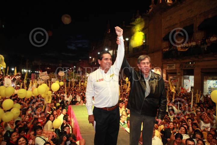 MORELIA, MICHOACAN, 06NOVIEMBRE2011.- Cierre de campaña de Silvano Aureoles, candidato del PRD a la gubernatura del estado, junto con Cuauhtemoc Cárdenas ayer. FOTO: CUARTOSCURO.COM