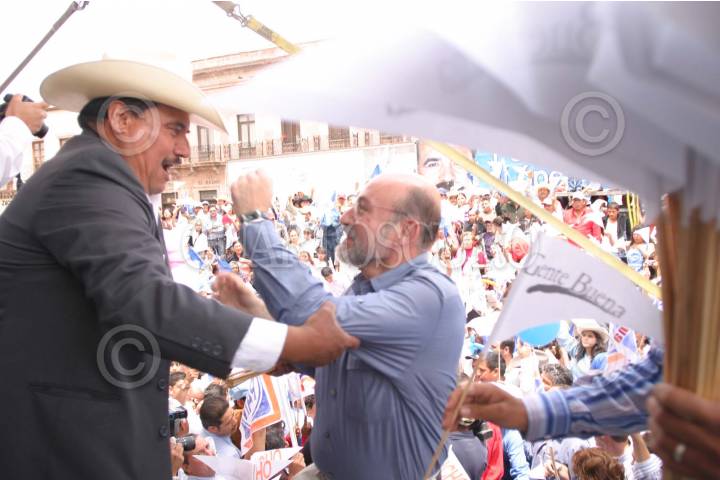 ZACATECAS, ZACATECAS.- Francisco López, candidato a la gubernatura del PAN cerró su campaña política en la plaza de armas de la ciudad acompañado del dirigente nacional Luis Felipe Bravo Mena. FOTO: Iván Stephens/CUARTOSCURO.COM