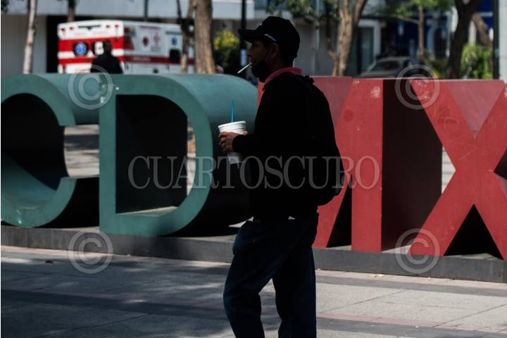 Un hombre fuma un cigarro sobre la calle Madero en el Centro Histórico.