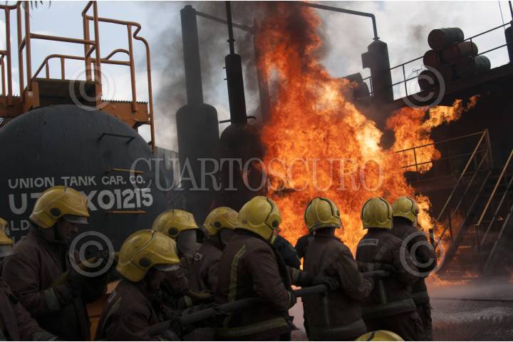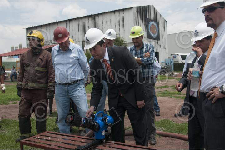 TIZAYUCA, HIDALGO, 01JULIO2015.- Elementos de emergencia de Protección Civil del Distrito Federal, recibieron un curso teórico-práctico sobre el manejo seguro del gas licuado de petroleo y control de incendios impartido por la Asociación Mexicana de Profesionales en Gas (AMPEGAS) en el centro de capacitación "La Posta". El curso tuvo como objetivo promover una cultura en la seguridad de las instalaciones de gases combustibles que permita salvar vidas a través de la prevención de accidentes. Fausto Lugo García, titular de Protección Civil capitalina, asistió al curso para supervisar y conocer el funcionamiento del centro de capacitación. FOTO: DIEGO SIMÓN SÁNCHEZ /CUARTOSCURO.COM
