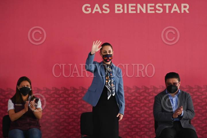 Claudia Sheinbaum, jefa de gobierno de la capital, presenció el inicio de la repartición de cilindros de Gas Bienestar en la Alcaldía Venustiano Carranza.