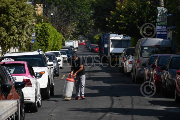 Un vecino de la Alcaldía Venustiano Carranza lleva girando su cilindro de gas para ser intercambiado por uno de Gas Bienestar.