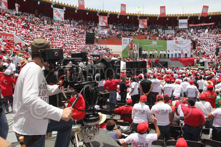 PACHUCA, HIDALGO, 20MAYO2012.- Producciones cinematográficas de alta tecnología filmaron hoy el mitin que realizó el candidato a la presidencia por el PRI, Enrique Peña Nieto, en la plaza de Toros de Pachuca. FOTO: SAÚL LÓPEZ /CUARTOSCURO.COM