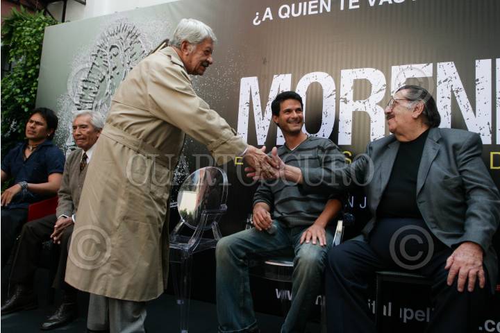 MÉXICO D.F., 25NOVIEMBRE2009.- Los actores, Horacio García Rojas, José Carlos Ruiz, Ignacio López Tarzo y Pedro Weber “Chatanuga” los cuales forman el elenco de la nueva producción cinematográfica “Morenita” acompañados del director Alan Jonsson García, donde dieron a conocer lo pormenores de esta cinta que se estrenara el próximo viernes. FOTO: GUILLERMO PEREA/CUARTOSCURO.COM