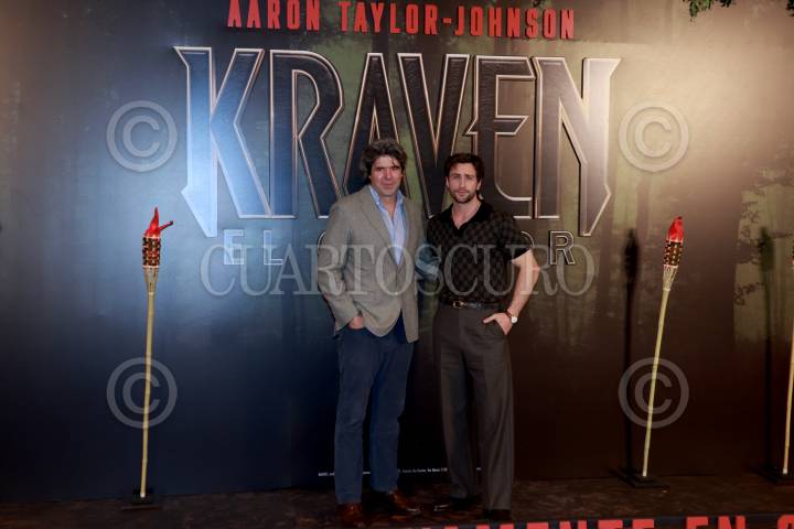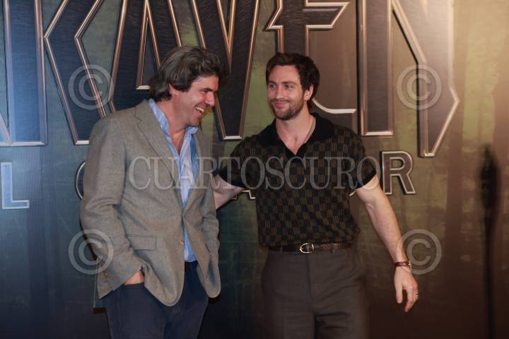 CIUDAD DE MÉXICO, 05DICIEMBRE2024. El director J. C. Chandor y el actor Aaron Taylor-Johnson durante la promoción de la película “Kraven El Cazador”, en un cine al poniente de la Ciudad de México. Este personaje forma parte del universo del Hombre Araña como uno de los villanos. FOTO: EDGAR NEGRETE LIRA/CUARTOSCURO.COM