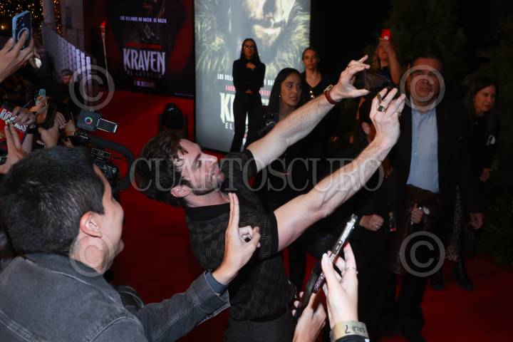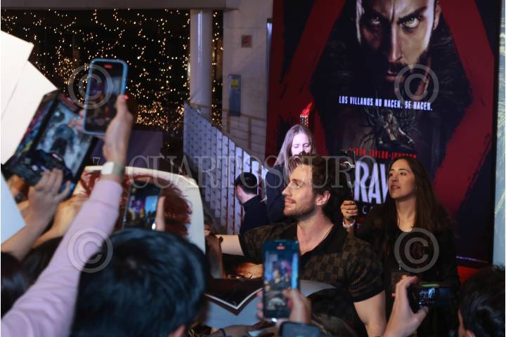 CIUDAD DE MÉXICO, 05DICIEMBRE2024. El actor Aaron Taylor-Johnson quien protagoniza la película “Kraven El Cazador”, asiste al Fan Event en Ciudad de México. Este personaje forma parte del universo del Hombre Araña como uno de los villanos. FOTO: EDGAR NEGRETE LIRA/CUARTOSCURO.COM