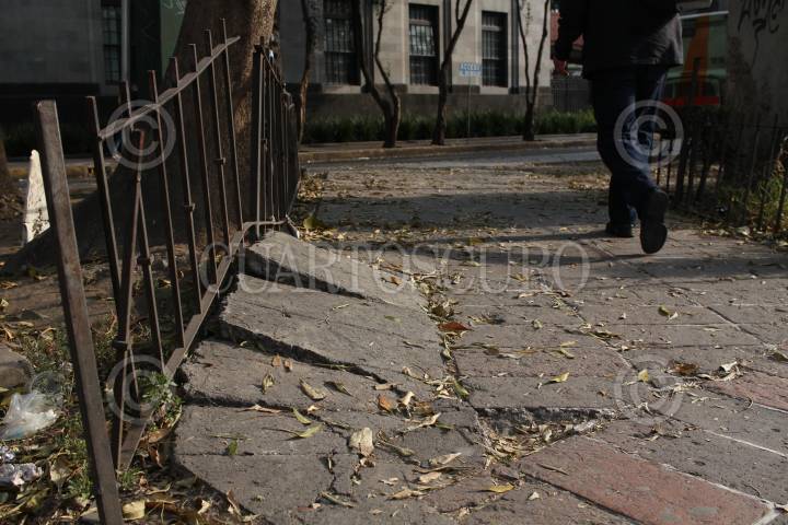 MÉXICO, D.F., 01ENERO2016.- Banquetas y cinta asfáltica dañada se observan en las inmediaciones el metro Chapultepec, este es el aspecto que tienen muchas de las calles de la ciudad y que son el mal que padecen miles de peatones y automovilistas. FOTO: ISABEL MATEOS /CUARTOSCURO.COM