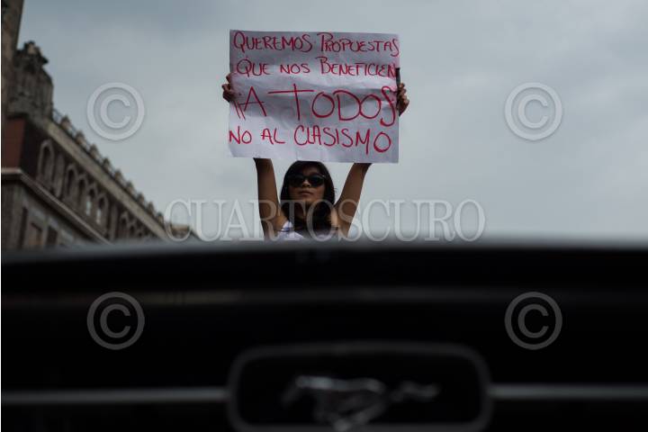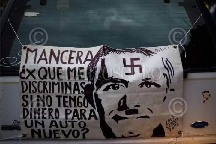 MÉXICO, D.F., 29JUNIO2014.- Cientos de inconformes con la iniciativa de ley "No circula" se manifestaron a las afueras de las instalaciones del GDF lanzando consignas en contra del Jefe de Gobierno, Miguel Ángel Mancera. FOTO: PEDRO ANZA /CUARTOSCURO.COM