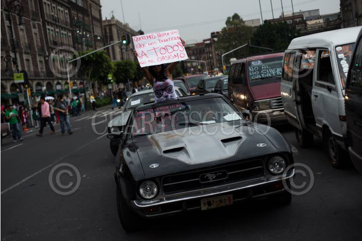 MÉXICO, D.F., 29JUNIO2014.- Decenas de automovilistas circularon del Ángel de la Independencia al Zócalo de la ciudad, para protestar en contra de la implementación de el Hoy no Circula Sabatino, que entraría en vigor el próximo 01 de julio. FOTO: GUILLERMO PEREA /CUARTOSCURO.COM