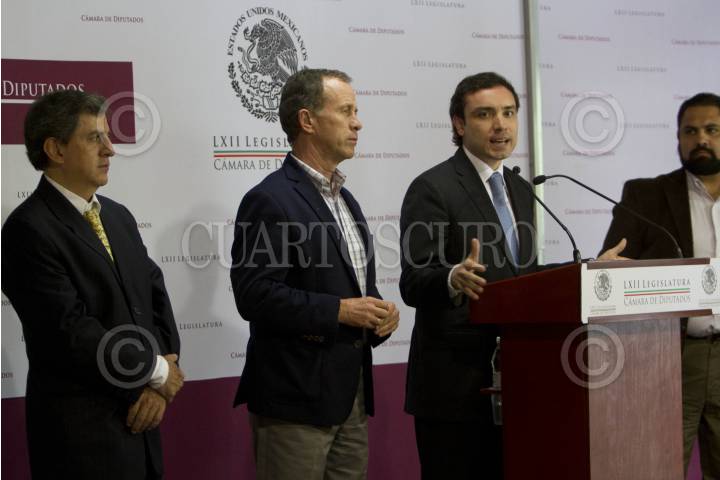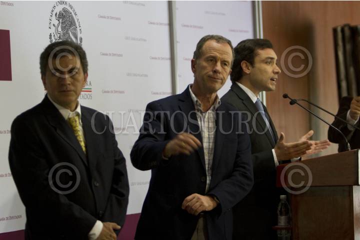 MÉXICO, D.F., 05AGOSTO2014.- Fernando Rodríguez Doval, diputado del PAN, acompañado de Lueje Tamargo, Presidente de la Asociación Civil CIUDAD POSIBLE, ex titular de la CONAGUA, y Gerardo López, Presidente de la Cámara de Comercio, Servicios y Turismo en pequeño de la Ciudad de México, durante la conferencia ofrecida a los representantes de los medios de comunicación, donde dieron a conocer su intención de buscar revocar el “Hoy No Circula Sabatino” por medio de una consulta ciudadana. FOTO: GUILLERMO PEREA /CUARTOSCURO.COM