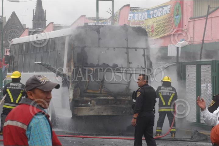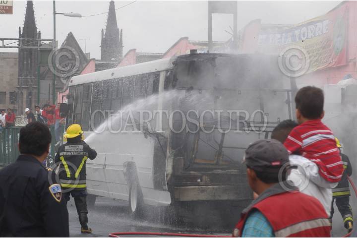 MÉXICO D.F., 19SEPTIEMBRE2008.- El cuerpo de bomberos controlo esta mañana un incendio en un camion de pasajeros que circulaba en eje 1 norte y Soto colonia Guerrero. FOTO: JULIETA MORA/CUARTOSCURO.COM