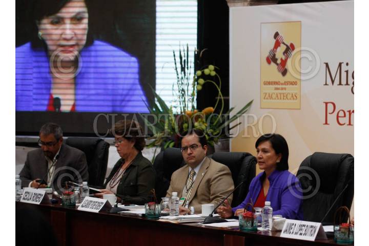 ZACATECAS, ZACACTECAS, 28JULIO2009.- Amalia García Medina, gobernadora de este estado, dió inició a la mesa redonda "Migración Circular: Perspectivas y Experiencias Internacionales, que se lleva acabo el día de hoy junto con autoridades de esta entidad y de los Estados Unidos Americanos. FOTO: CUARTOSCURO.COM