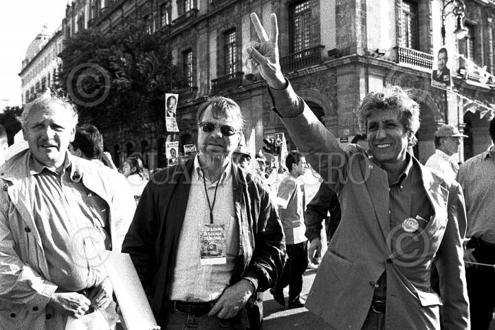 México D.F., 24 de Junio de 2000.- Jorge Castañeda y Adolfo Aguilar Zinser, en el cirre de campaña de Vicente Fox. FOTO: Pedro VALTIERRA/CUARTOSCURO.COM