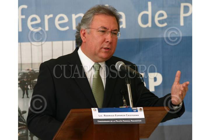 MÉXICO, D.F., 12FEBRERO2009.- Rodrigo Esparza Cristerna, comisionado de la Policía Federal presentó ante los medios de comunicación a 10 presuntos sicarios que detuvieron el día de ayer en el municipio de Tultitlan quienes fueron designados por el jefe directo Edgar Valdez Villareal alias “La Barbie” para establecer un centro de operaciones en el Estado de México a fin de eliminar a integrantes la banda conocida como “La Familia”. Estos sujetos están en investigación por tener nexos con la organización criminal de los Beltrán Leyva. FOTO: SAÚL LÓPEZ/CUARTOSCURO.COM