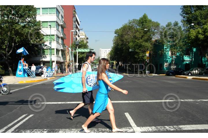 MÉXICO D.F. 22MARZO2007.- Ha comenzado el calido clima de primavera. Una pareja camina en las calles de la colonia condesa en busca de la playa. FOTO: GERMÁN ROMERO/CUARTOSCURO.COM