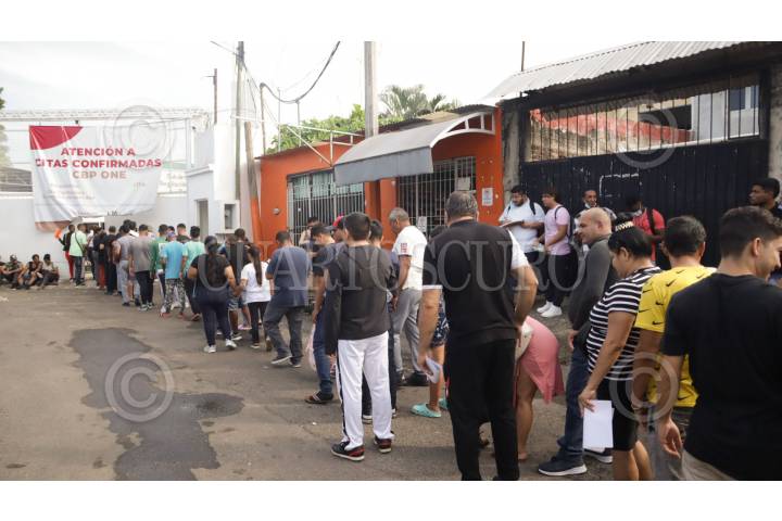 TAPACHULA, CHIAPAS, 04NOVIEMBRE2024.- Migrantes haces largas filas en las oficinas de regularización migratoria del Instituto Nacional de Migración (INM), esto con la finalidad de hacer válida su cita CBP ONE ( Oficina de Aduanas y Protección Fronteriza de Estados Unidos), ahí abordarán autobuses que los trasladarán a la frontera norte de México en donde con su cita intentarán obtener una estancia legal en Estados Unidos. FOTO: DAMIÁN SÁNCHEZ/CUARTOSCURO.COM