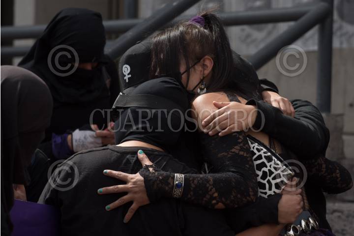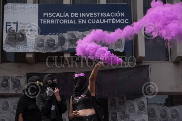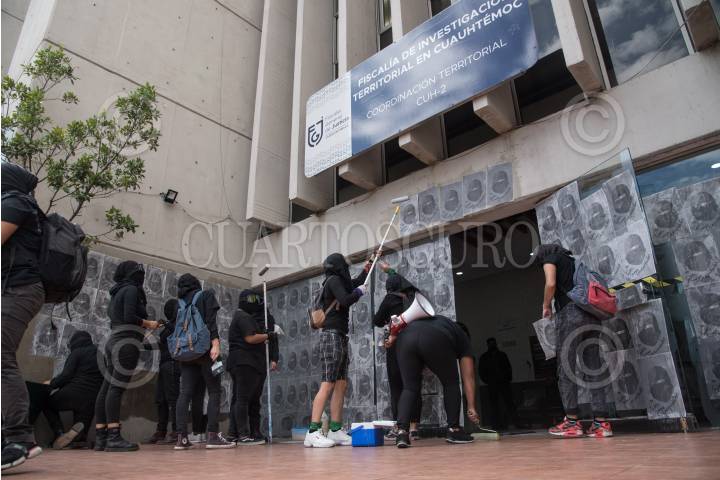 Integrantes de la colectiva feminista Bloque Negro y activistas LGBTTTIQ+ realizaron un mitin pacífico al exterior de la Fiscalía de Investigación Territorial en Cuauhtémoc.