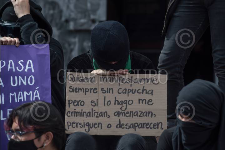 Integrantes de la colectiva feminista Bloque Negro y activistas LGBTTTIQ+ realizaron un mitin pacífico al exterior de la Fiscalía de Investigación Territorial en Cuauhtémoc debido a los recientes citatorios que han recibido citatorios por Daños a la Nación.