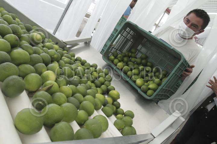 TEPALCINGO, MORELOS, 31ENERO2014.- Campesinos citricultores inauguraron, junto con autoridades municipales y de la SAGARPA, la Empacadora y Centro de Acopio de Cítricos "Rancho el Pochotillo". Ahí embarcaron 28 toneladas de limón persa a Miami Florida, Estados Unidos. Con esta cifra llegaron a las 140 toneladas del cítrico exportadas a la Unión Americana y a Amsterdam, Holanda, en menos de un año. Cabe señalar que Morelos no es un Estado que tradicionalmente se dedicara a la siembra de estos productos, sin embargo es más rentable para ellos que la producción de maíz. FOTO: ANDRES YAÑEZ /CUARTOSCURO.COM