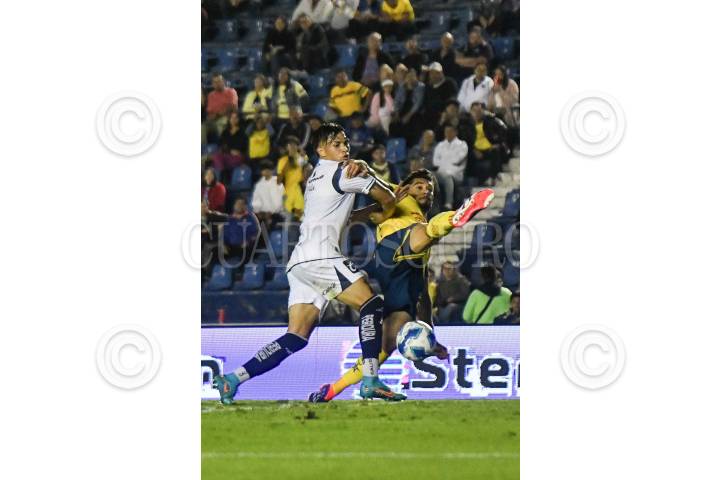 CIUDAD DE MÉXICO, 31AGOSTO2024.- José Rivero, mediocampista del Cruz Azul, frente a la barrida de Sebastián Cáceres, defensa del América, durante el partido correspondiente a la jornada 6 del Torneo Apertura 2024 de la Liga MX llevado a cabo en el estadio Ciudad de los Deportes. Marcador final: Cruz Azul (4) - (1) América. FOTO: MARIO JASSO/CUARTOSCURO.COM