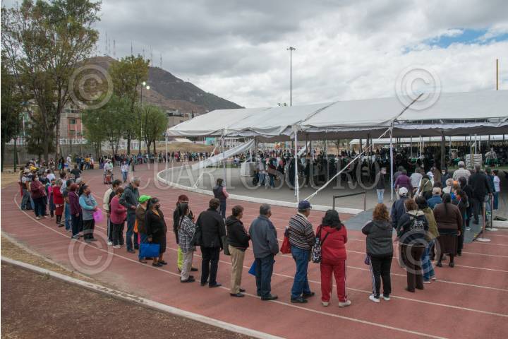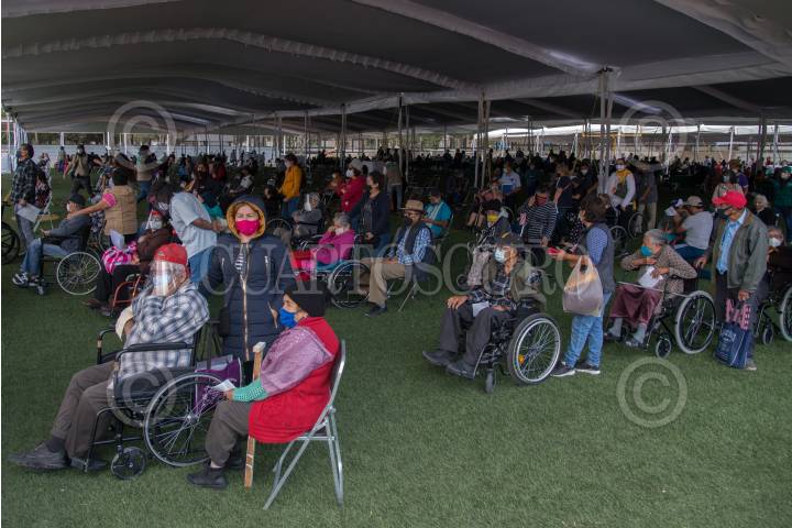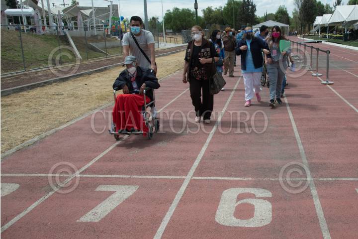 Adultos mayores cuyas iniciales de apellido paterno inician con las letras A, B, y C, asistieron a la Ciudad Deportiva Carmen Serdán, para recibir la vacuna rusa contra covid-19 "Sputnik V".