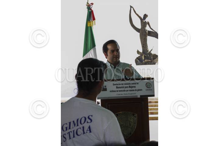 CIUDAD JUÁREZ, CHIHUAHUA, 30AGOSTO2012.- En medio de interrupciones orquestadas por madres de jovecitas desaparecidas, Alejandro Poiré, secretario de gobernación, dió un discurso en la estatua Memorial para Mujeres víctimas de homicidio por razones de género, que se ubica en Ejército Nacional FOTO: NACHO RUIZ /CUARTOSCURO.COM
