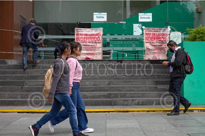 CIUDAD DE MÉXICO, 05 JUNIO 2025.- Trabajadores del Poder Judicial de la Ciudad de México realizaron un paro indefinido de actividades en la Ciudad Judicial, ubicada en la colonia Doctores. La protesta se realiza en rechazo a un aumento salarial de solo el 5% y para exigir el respeto a sus prestaciones. El paro afecta los juzgados de Niños Héroes, donde los trabajadores demandan mejoras en sus condiciones laborales. FOTO: ROGELIO MORALES / CUARTOSCURO.COM