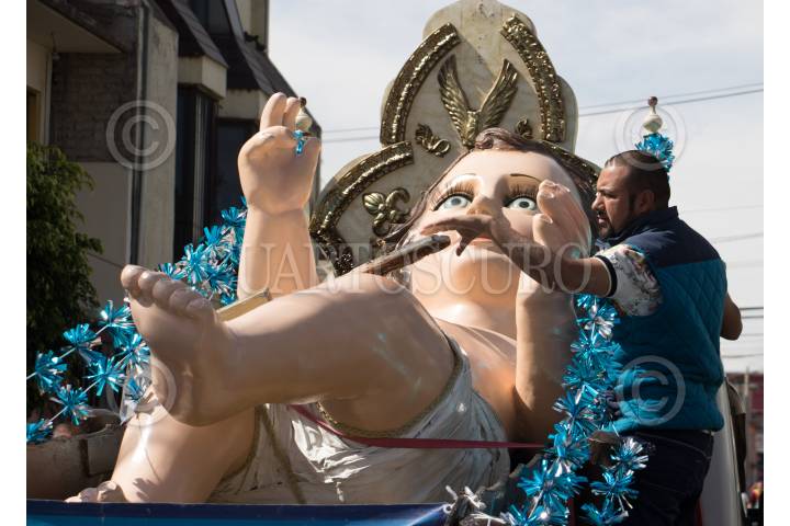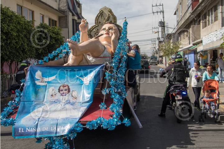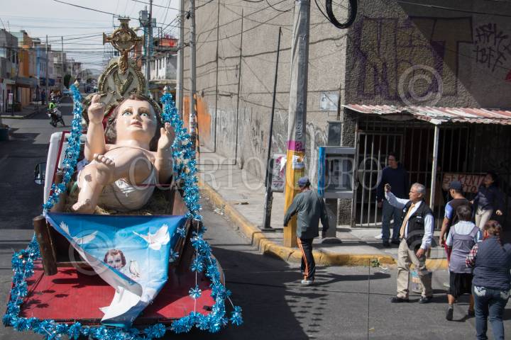 CIUDAD NEZA, ESTADO DE MÉXICO, 16DICIEMBRE2017.- El Niño Dios más grande del mundo realizó un recorrido por las principales calles de Ciudad Neza, dicho traslado se realizó abordo de una grua y fue llevado de la colonia Ampliación Las Aguilas, hacia el parque invernal Divertineza ubicado en Ciudad Jardín donde se montará un nacimiento monumental. FOTO: SAÚL LÓPEZ /CUARTOSCURO.COM