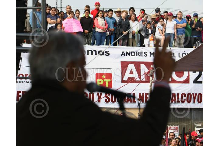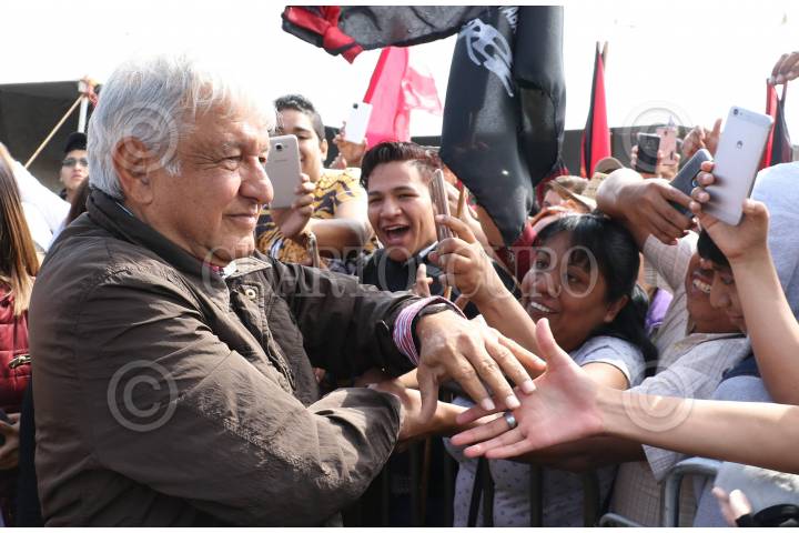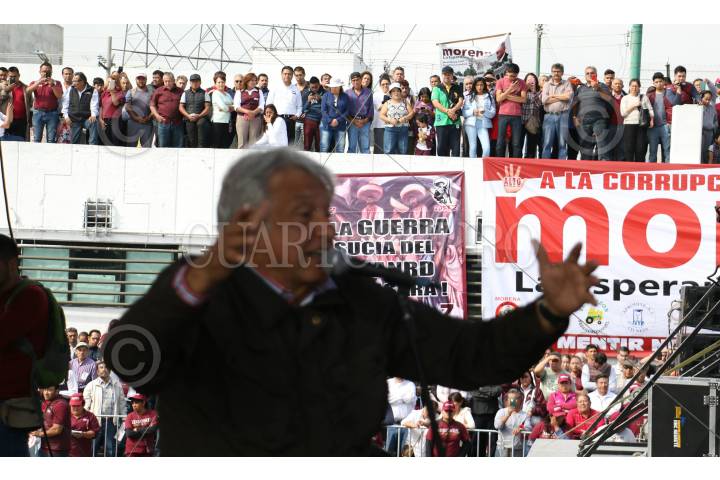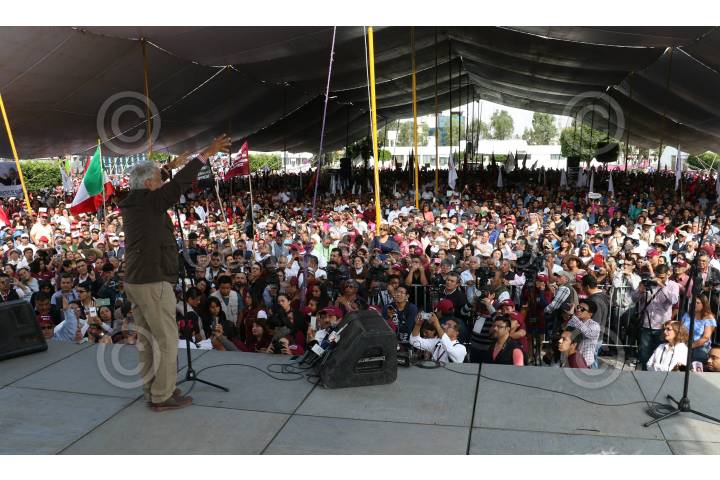 CIUDAD NEZA, ESTADO DE MÉXICO, 05MAYO2018.- Andrés Manuel López Obrador, candidato de MORENA a la presidencia de la república se reunió con miles de simparizantes de su partido en la explanada de Ciudad Neza donde dio a conocer su propuesta de gobierno. FOTO: SAÚL LÓPEZ /CUARTOSCURO.COM