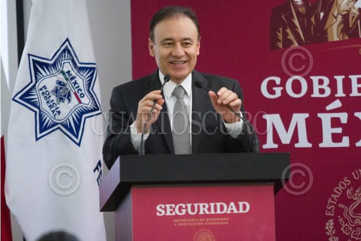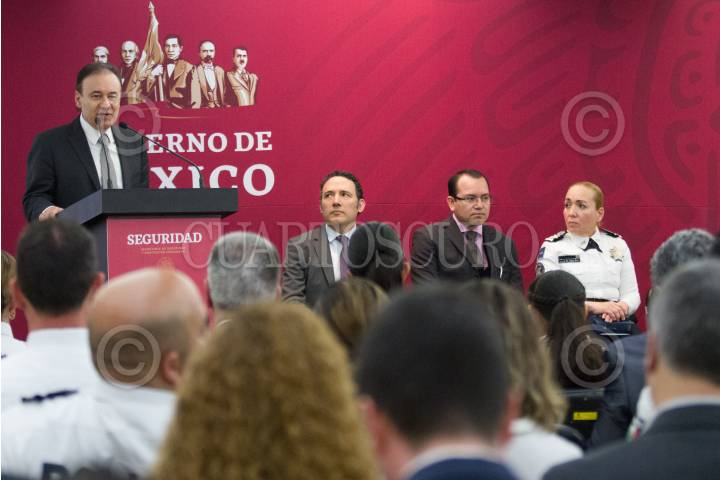 GUADALAJARA, JALISCO, 19NOVIEMBRE2019.- Alfonso Durazo Montaño Secretario de Seguridad y Protección Ciudadana del Gobierno Federal, Enrique Alfaro Ramírez Gobernador del Estado y demás autoridades militares, estatales y municipales, encabezaron la Segunda Reunión Regional de Conferencias Nacionales de Secretarios de Seguridad Publica , del Sistema Penitenciario y Seguridad Publica Municipal Zona Occidente, esto en evento que se llevo a cabo en Palacio de Gobierno. FOTO: FERNANDO CARRANZA GARCIA / CUARTOSCURO.COM