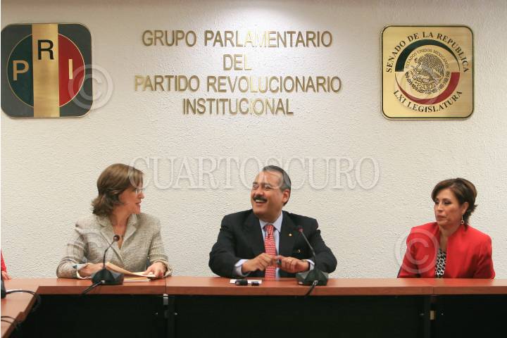 MÉXICO, D.F., 09FEBRERO2010.- Alejandra Latapí, Manlio Fabio Beltrones, coordinador de los senadores priistas y Rosario Robles, durante la entrega de una serie de propuestas ciudadanas en el marco del análisis de la Reforma Política, impulsada por el Ejecutivo Federal las cuales fueron entregadas a la Presidencia del Instituto Belisario Domínguez del Senado de la República. FOTO: MOISÉS PABLO/CUARTOSCURO.COM
