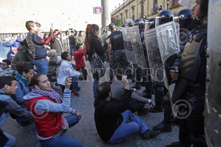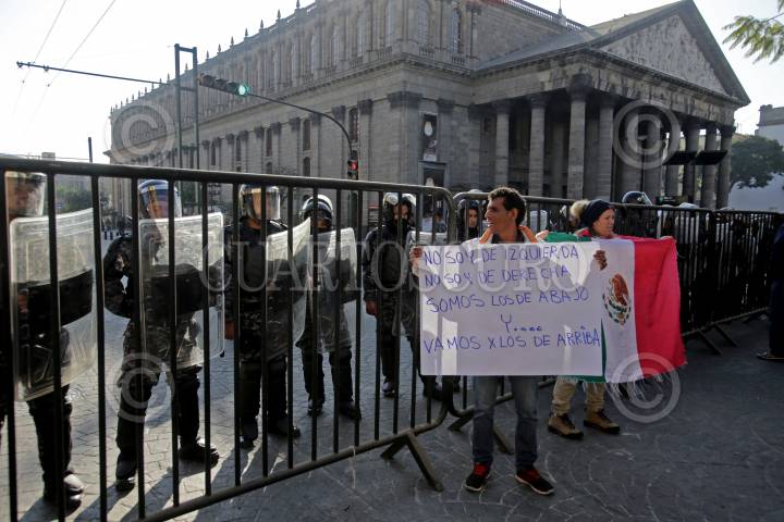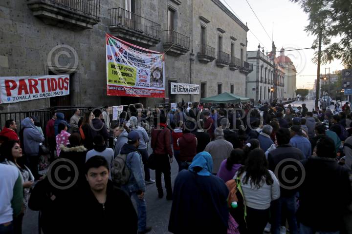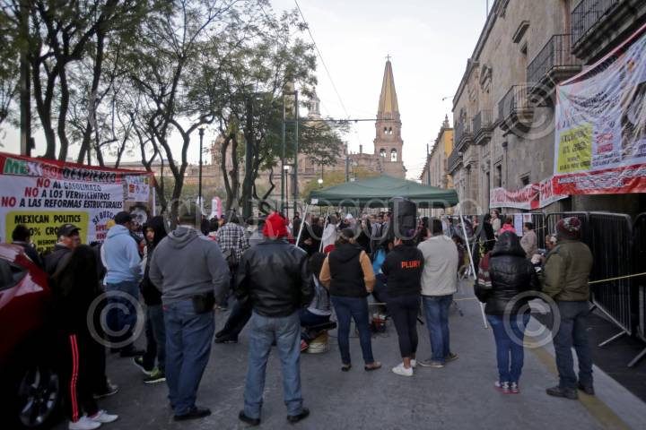 GUADALAJARA, JALISCO. 26ENERO2017.- Desde esta a mañana el frente Unido México Despierta conformado por 50 organizaciones ciudadanas, realiza un plantón permanente a las afueras del Congreso del Estado por el descontento sobre los últimos acontecimientos ocurridos a nivel nacional como el tema de la Reforma Energética y otros asunto de carácter local. FOTO : FERNANDO CARRANZA GARCIA / CUARTOSCURO.COM